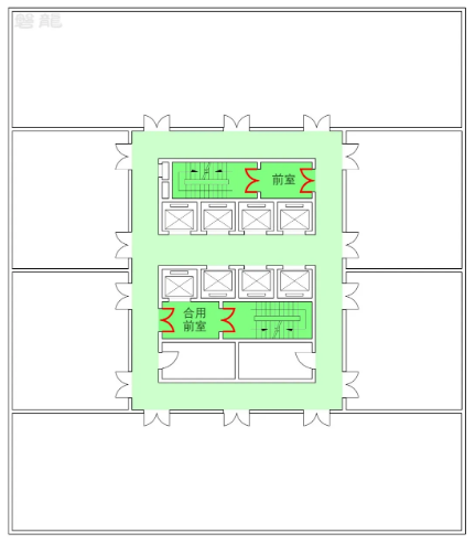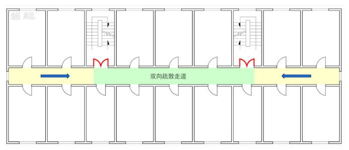 【图示2】双向疏散走道(中间双向箭头区域)