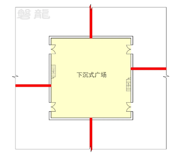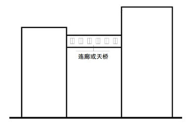 直接通向室外安全区域的出口,主要包括:房间直通室外的出口、疏散走道直通室外的出口、疏散楼梯间直通室外的出口【图示8】,以及符合标准要求的连廊、天桥【图示9】、下沉式广场的出口【图示10】等。